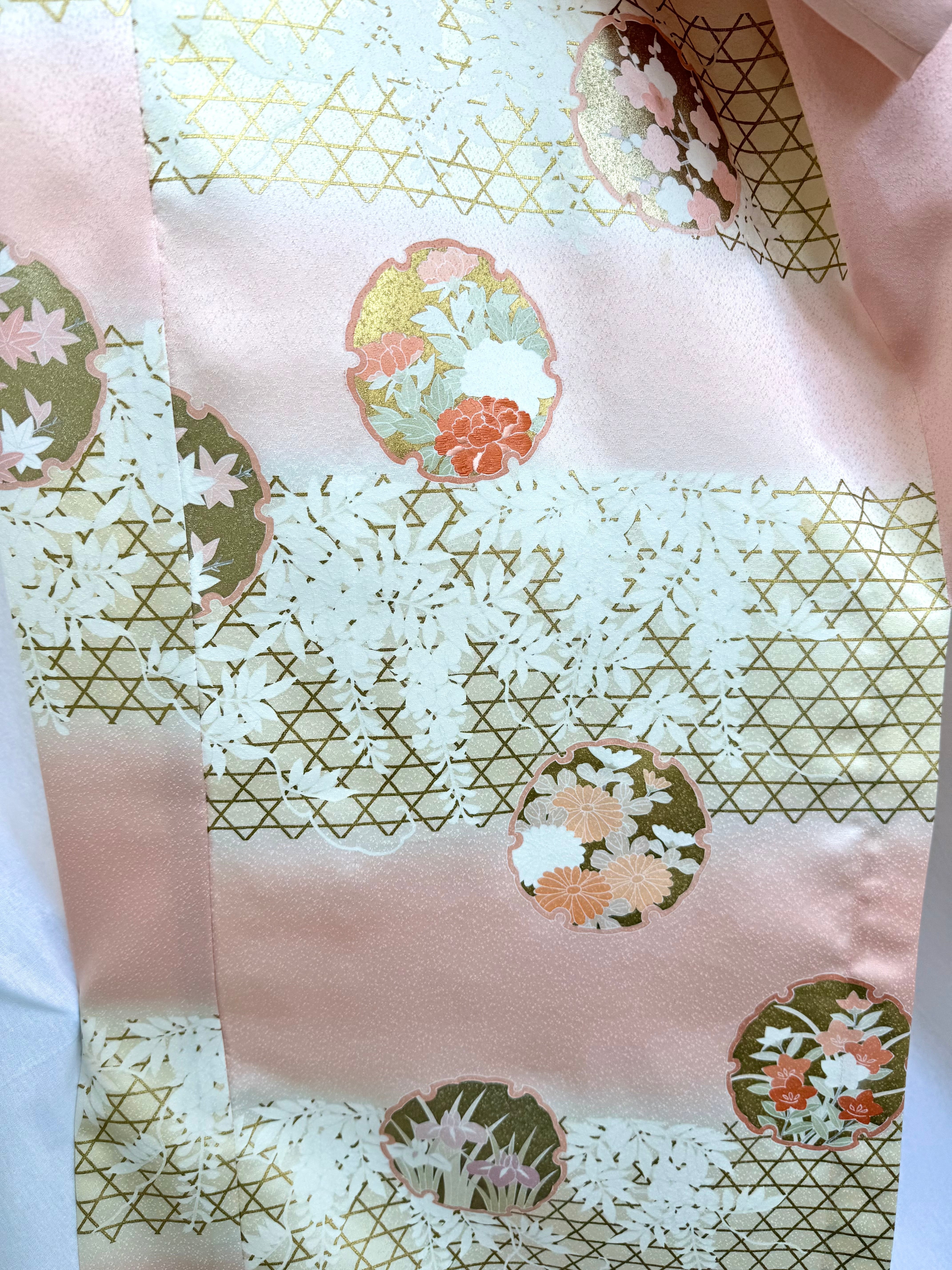 (2) There is no material label on kimono from the Taisho era to the early Showa era. At that time, there was no polyester material, so there were many silk, cotton, and linen, but please understand that it is very difficult to judge the material because there is no way to guess the fabric in the age of the kimono from the pattern and texture.