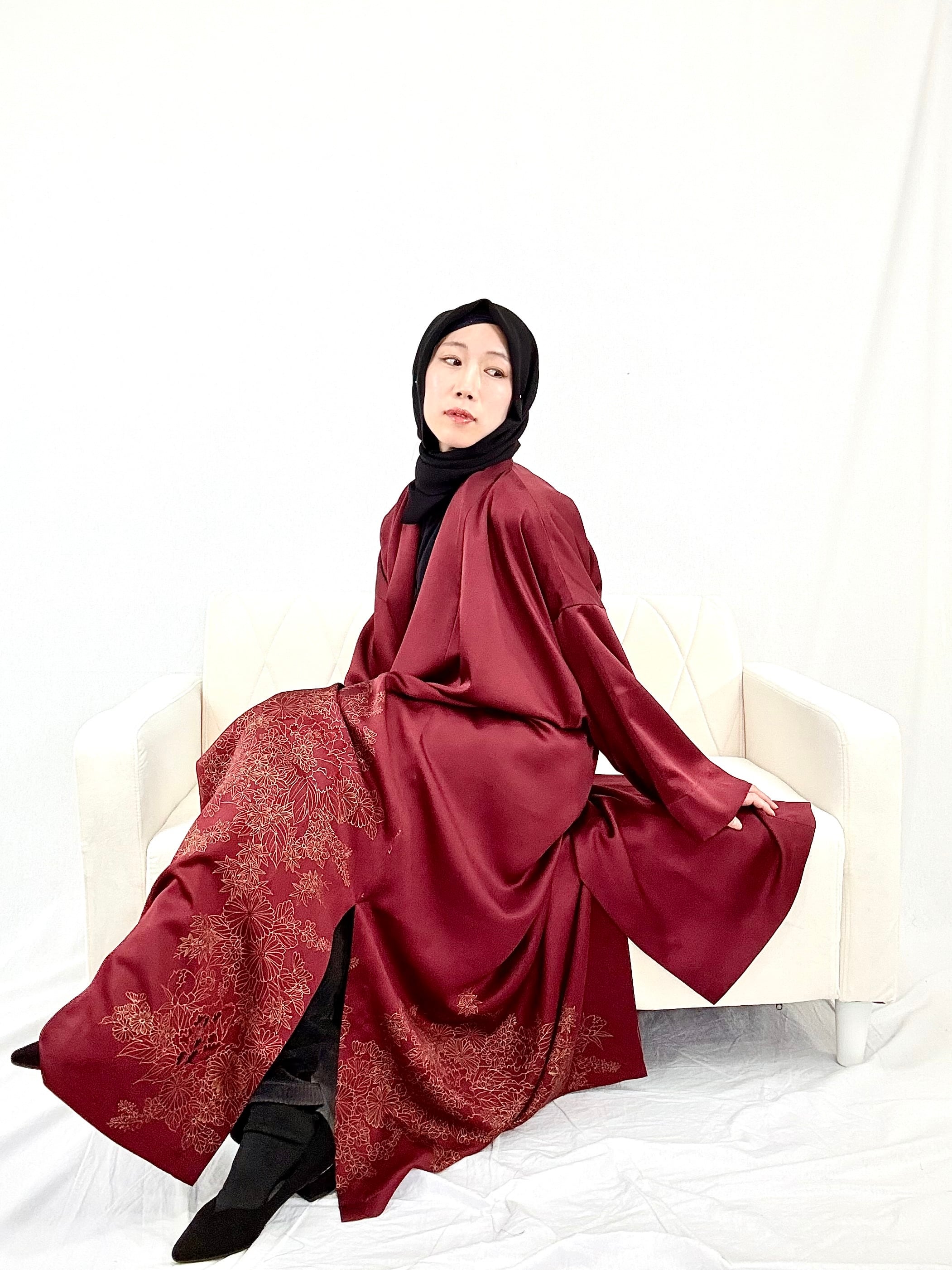 紗紗 xiaxia hijab Japan makes abaya using antique kimono.