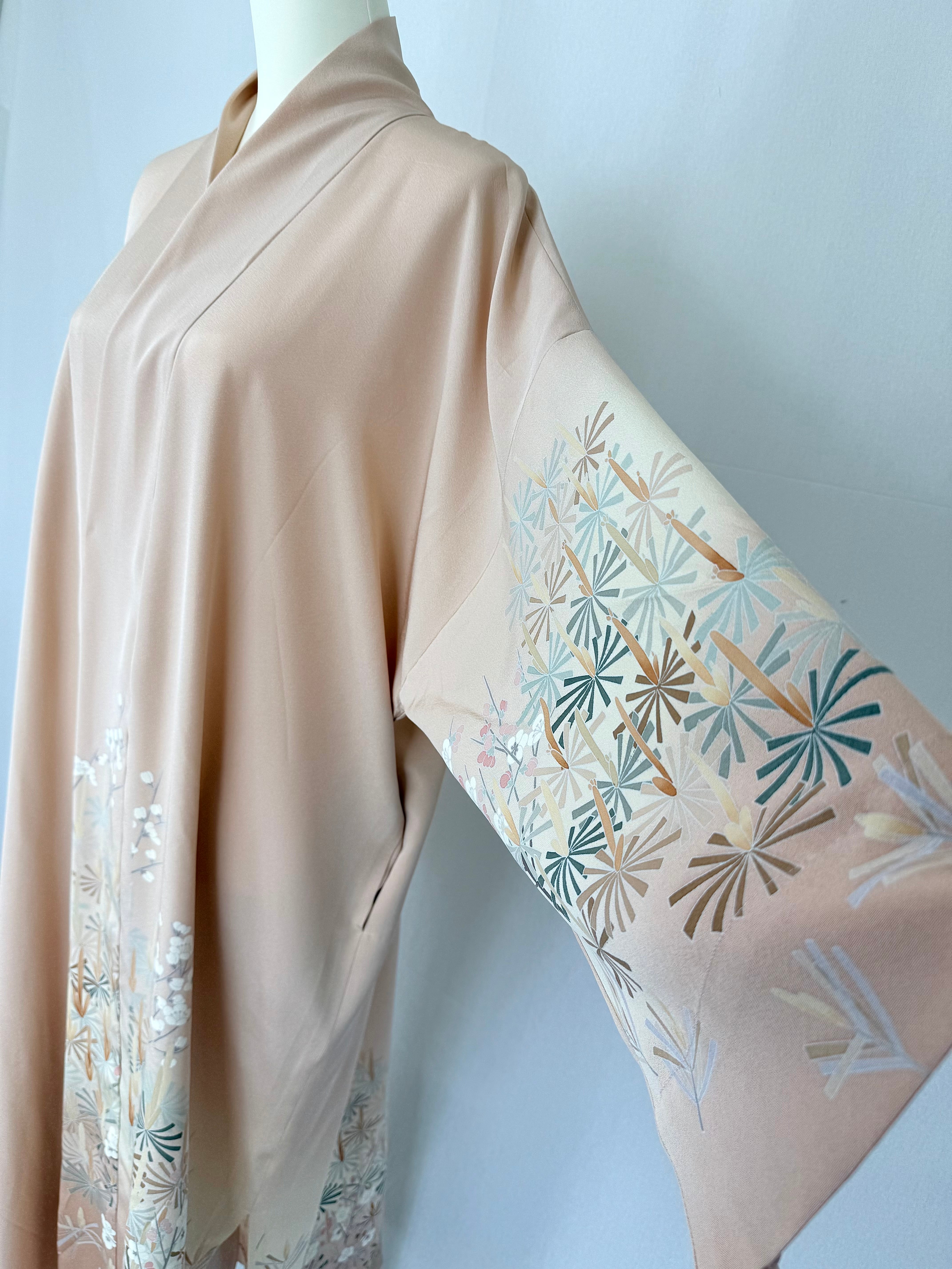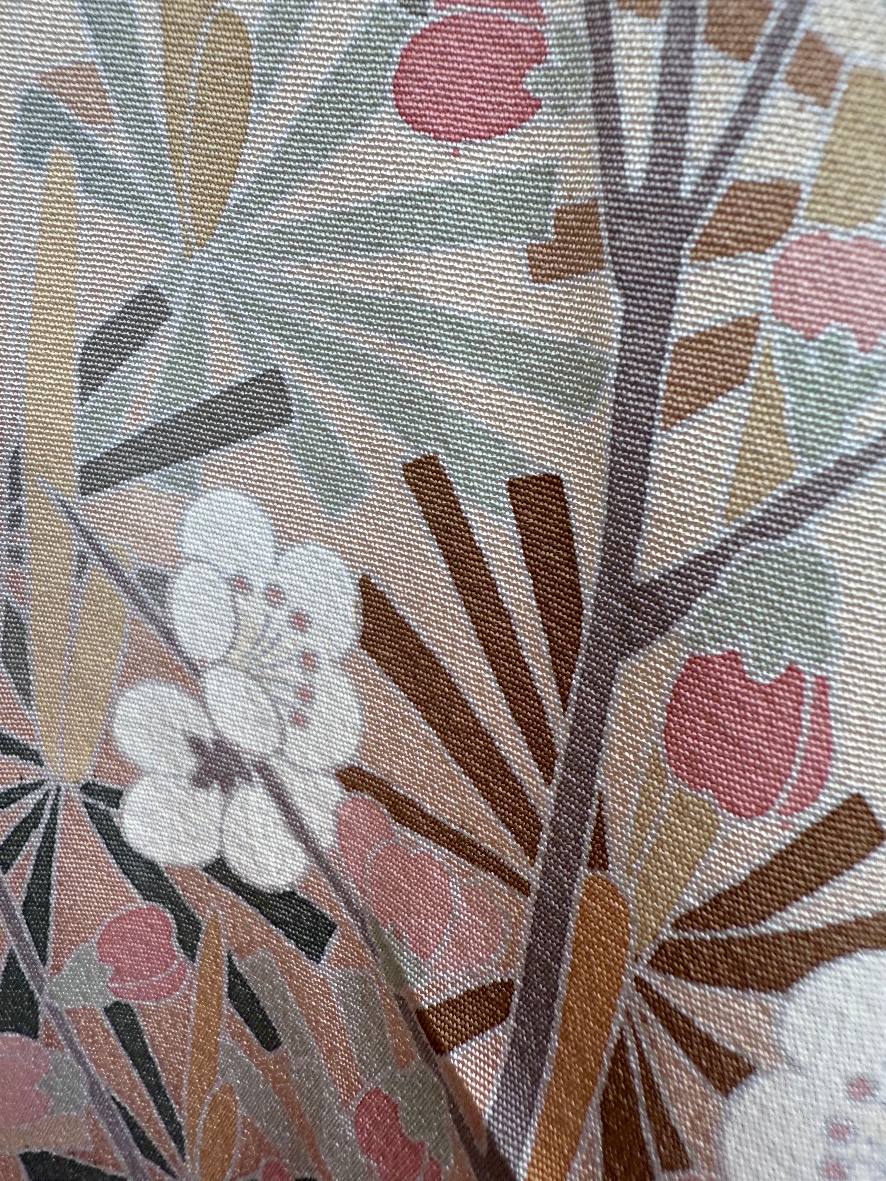 (2) There is no material label on kimono from the Taisho era to the early Showa era. At that time, there was no polyester material, so there were many silk, cotton, and linen, but please understand that it is very difficult to judge the material because there is no way to guess the fabric in the age of the kimono from the pattern and texture.