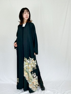 アンティーク着物は状態の良いものを選び、2度クリーニング後全て解いて生地にし、アバヤに仕立てています。