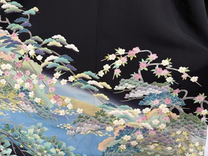 In addition, this kimono uses the most prestigious kimono among married women's kimonos called “Kurotomesode”.