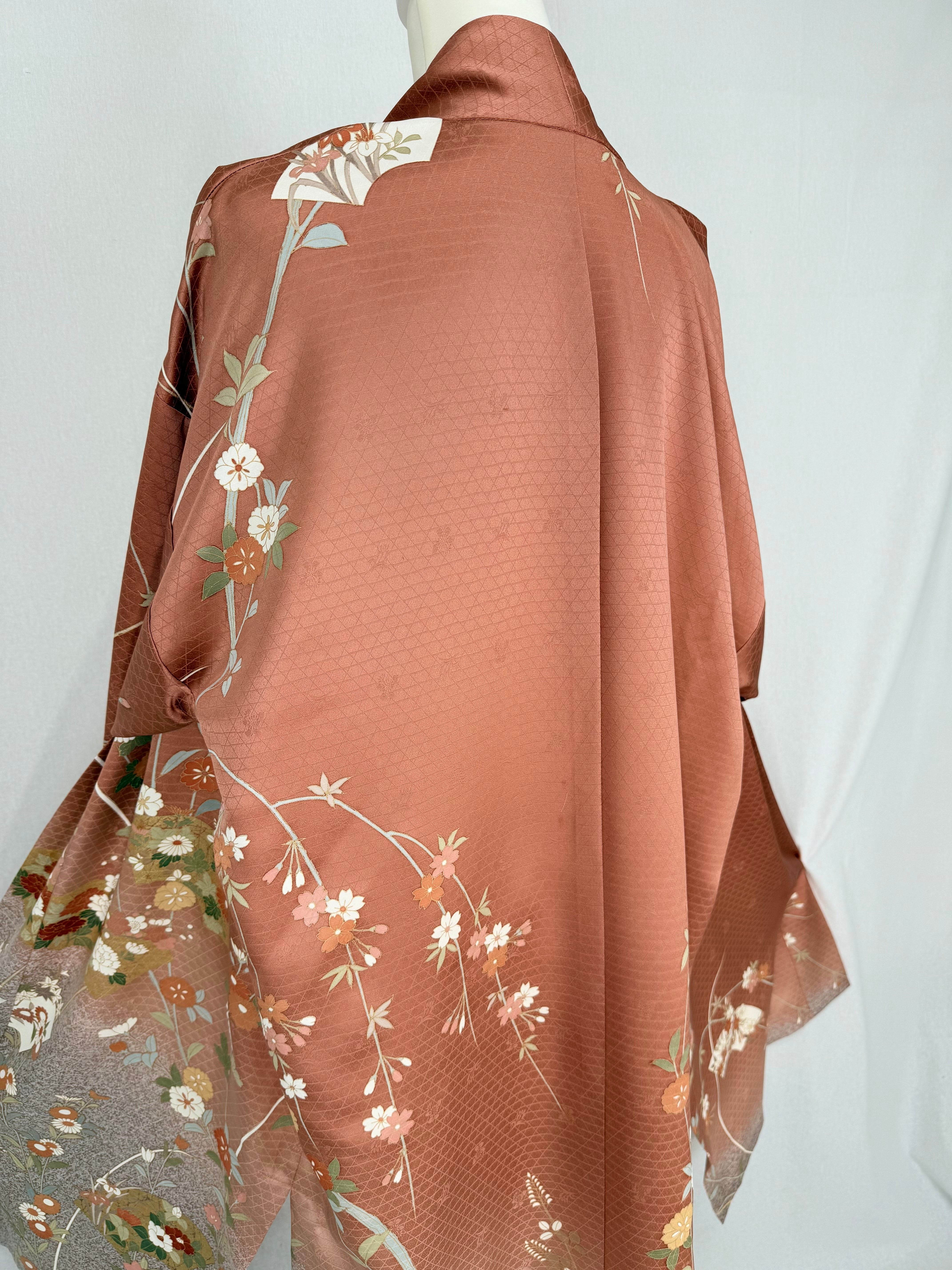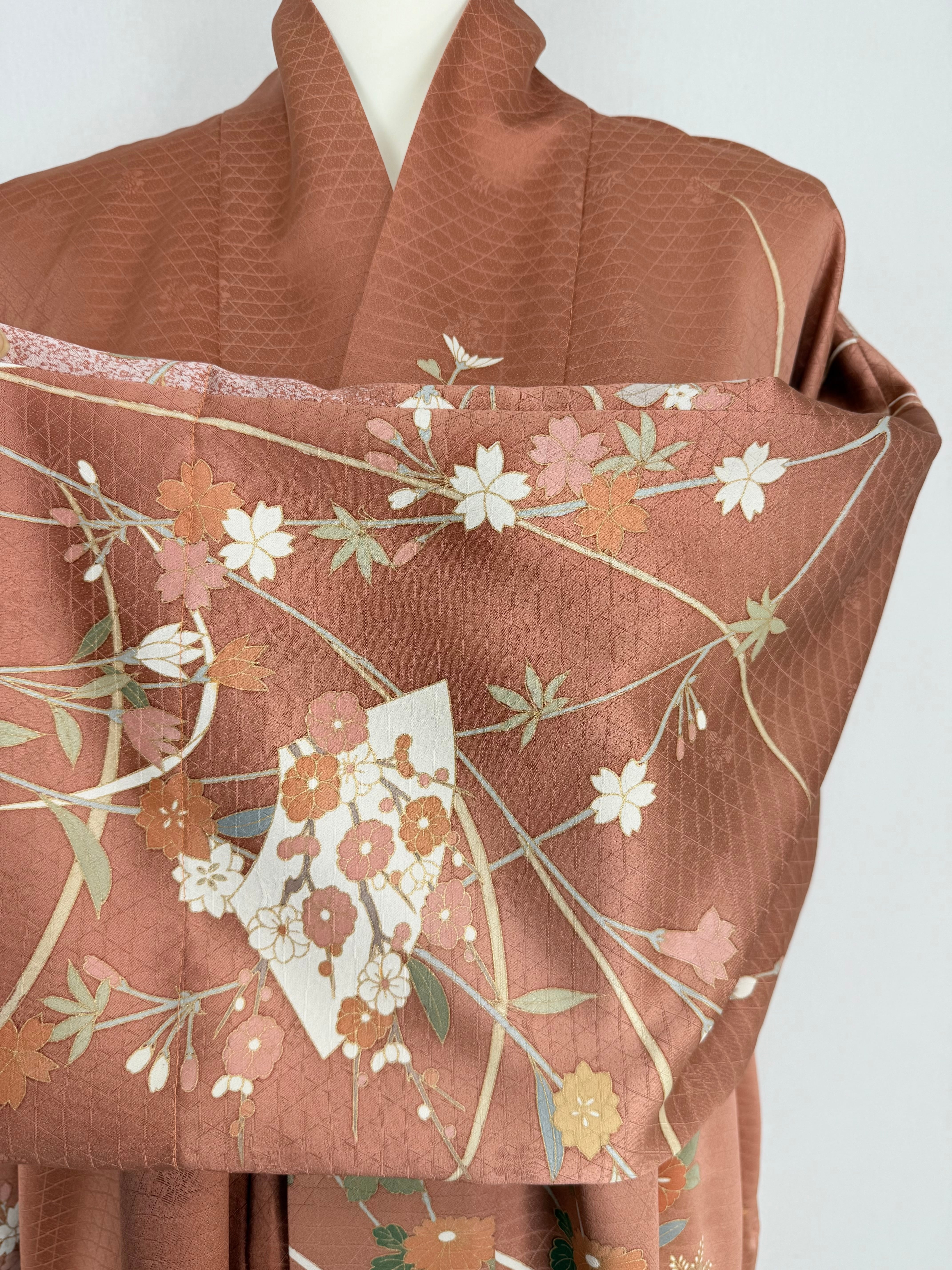 (2) There is no material label on kimono from the Taisho era to the early Showa era. At that time, there was no polyester material, so there were many silk, cotton, and linen, but please understand that it is very difficult to judge the material because there is no way to guess the fabric in the age of the kimono from the pattern and texture.