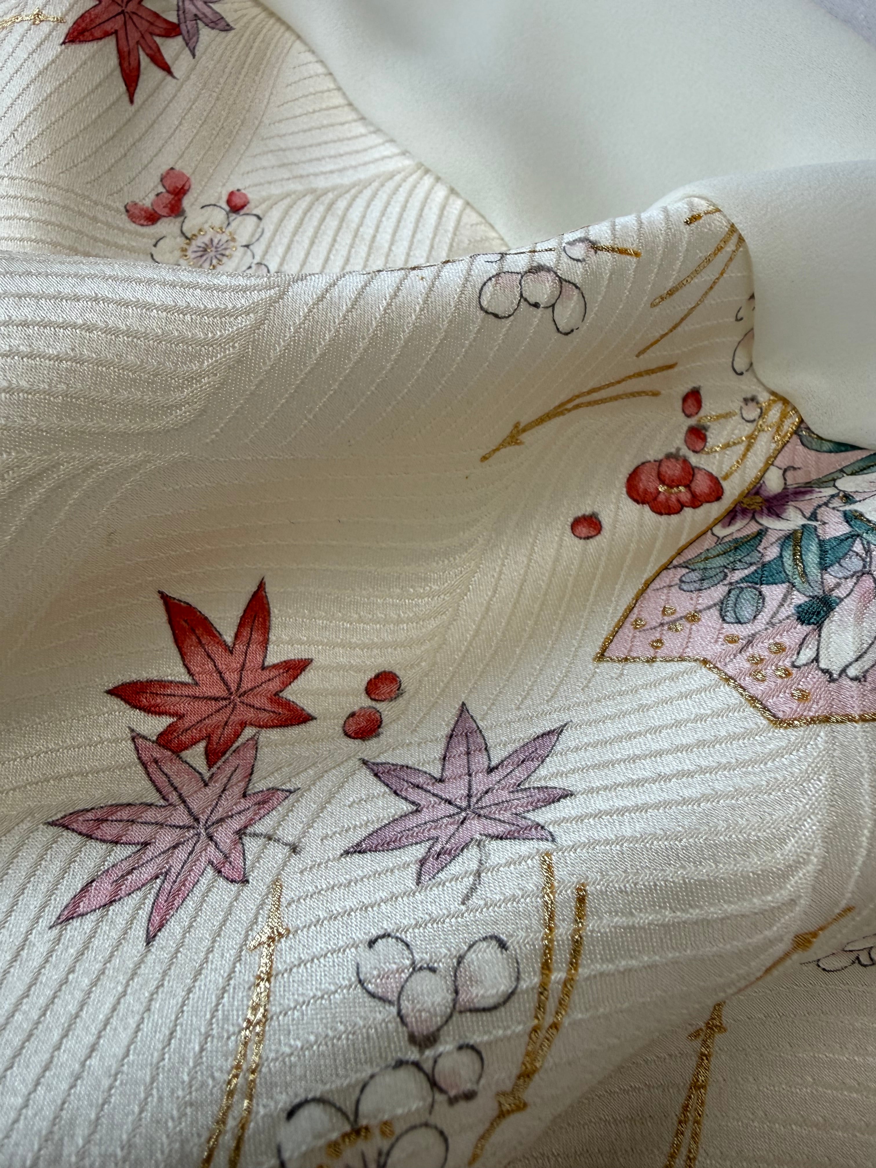 (2) There is no material label on kimono from the Taisho era to the early Showa era. At that time, there was no polyester material, so there were many silk, cotton, and linen, but please understand that it is very difficult to judge the material because there is no way to guess the fabric in the age of the kimono from the pattern and texture.