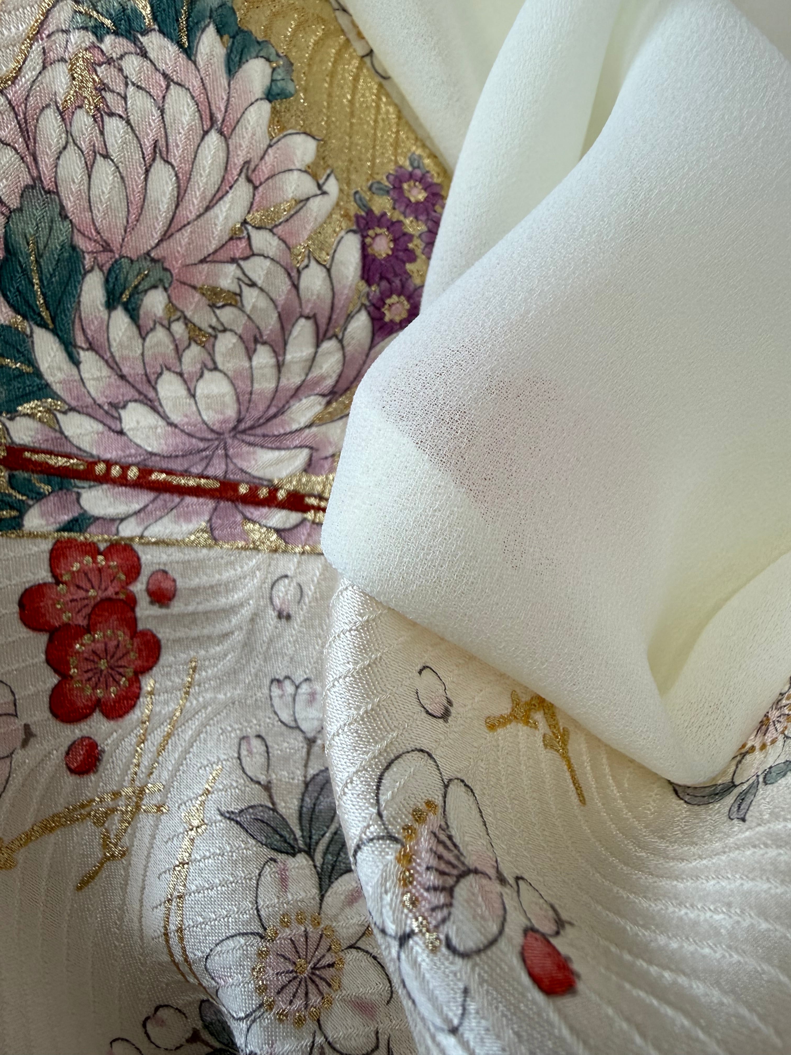 また薄いシフォン生地と着物生地を組み合わせているためどうしても多少の歪み ツレなどが生じる場合がございます。