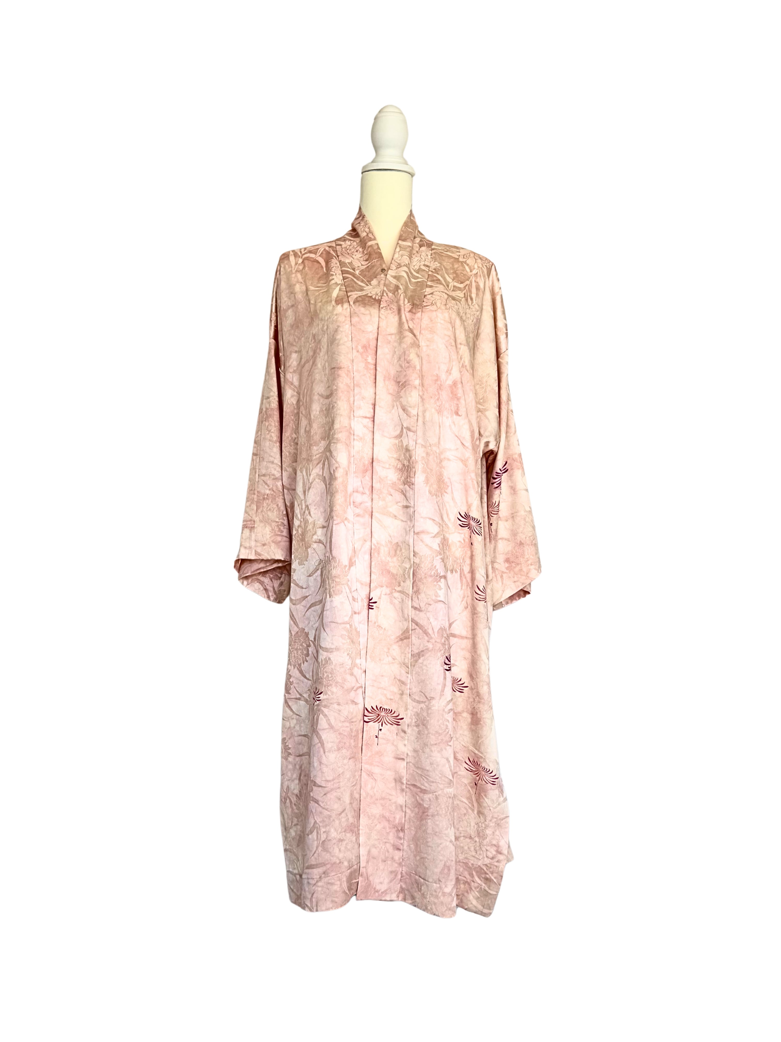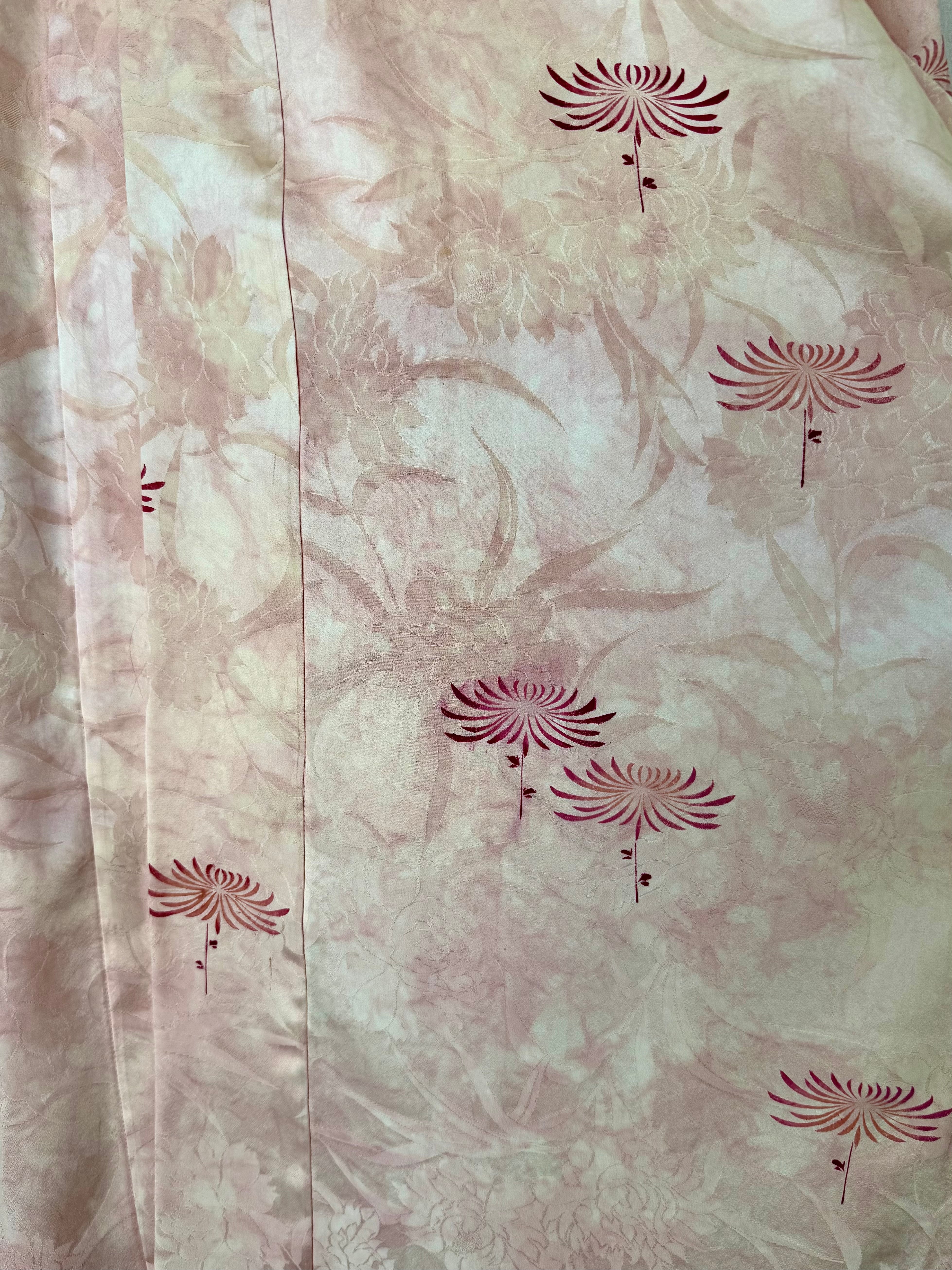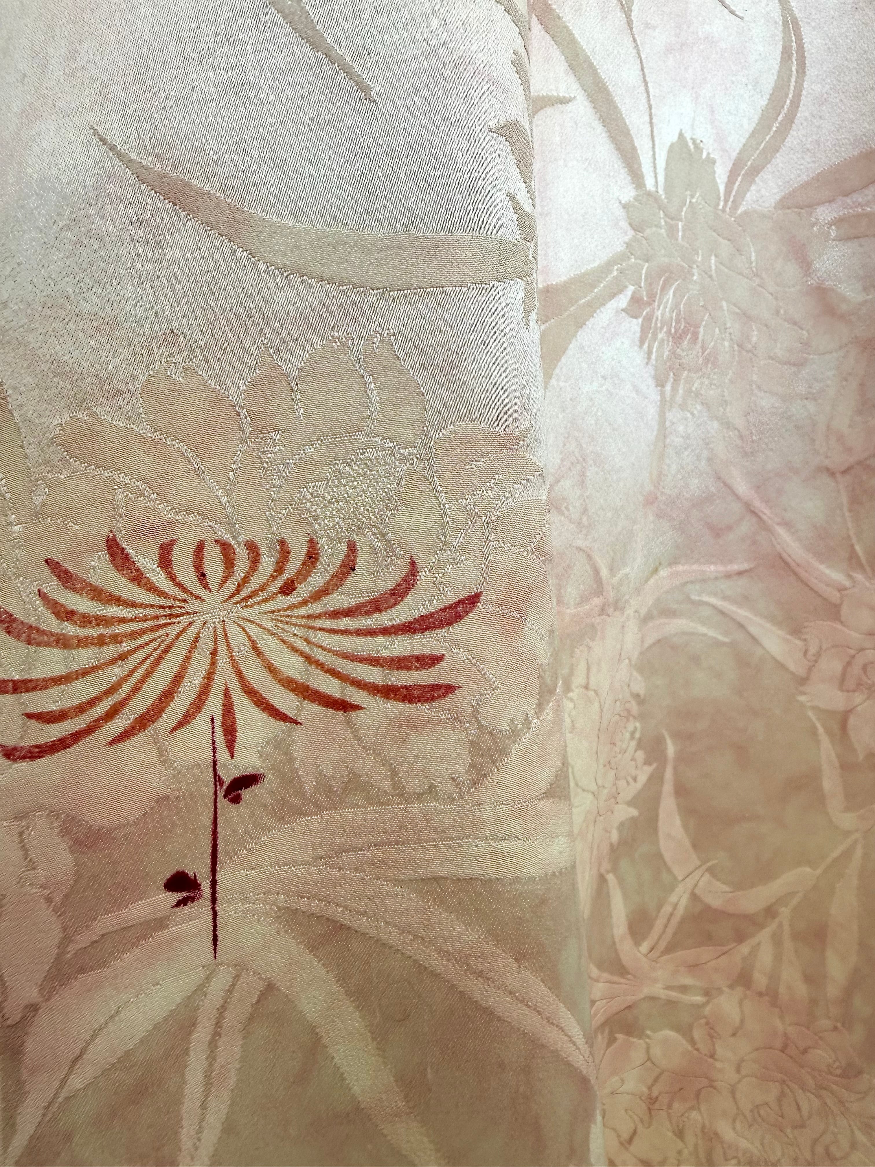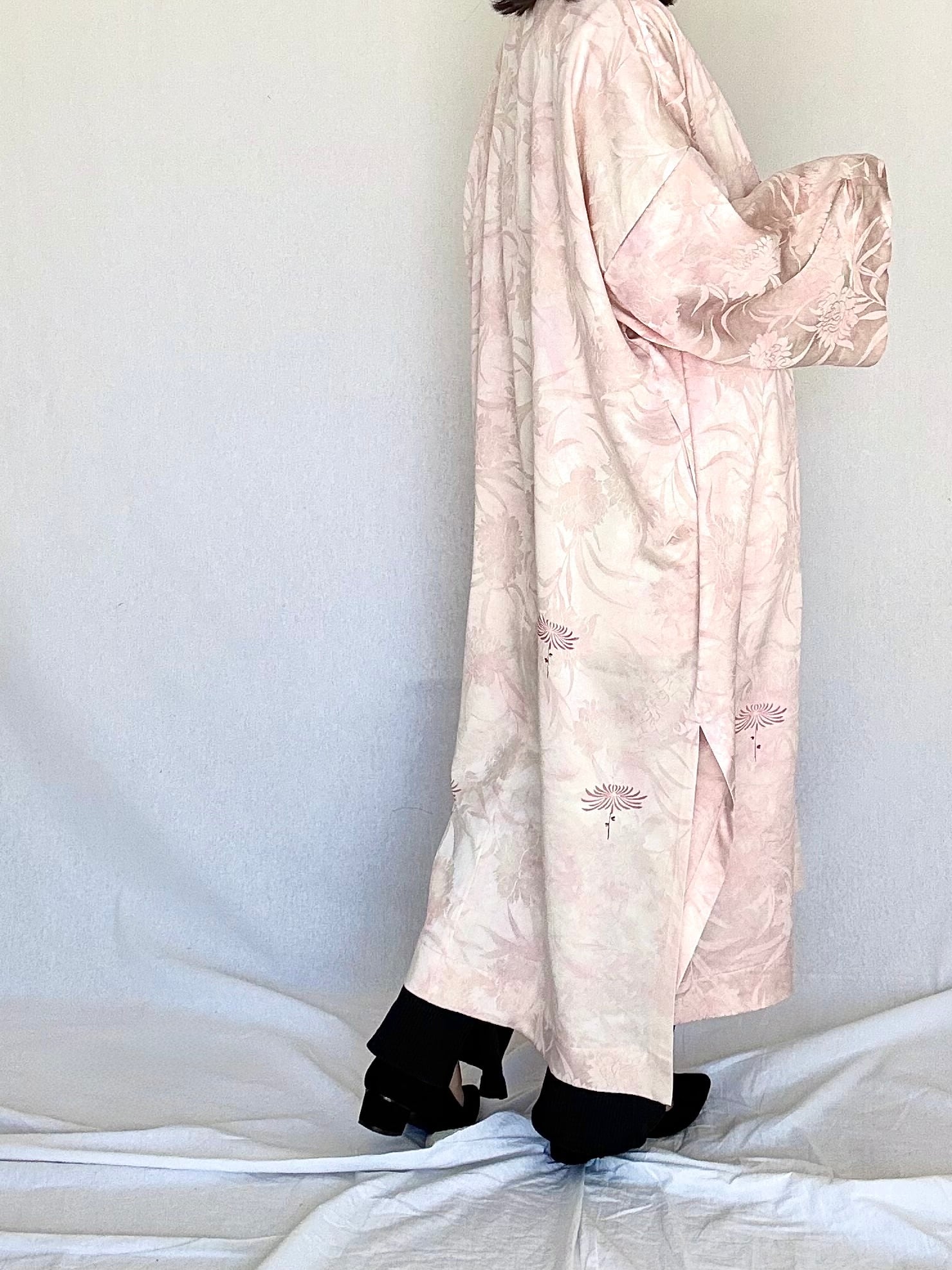 絹の光沢と菊文様の凹凸が珍しく、美しい着物アバヤです