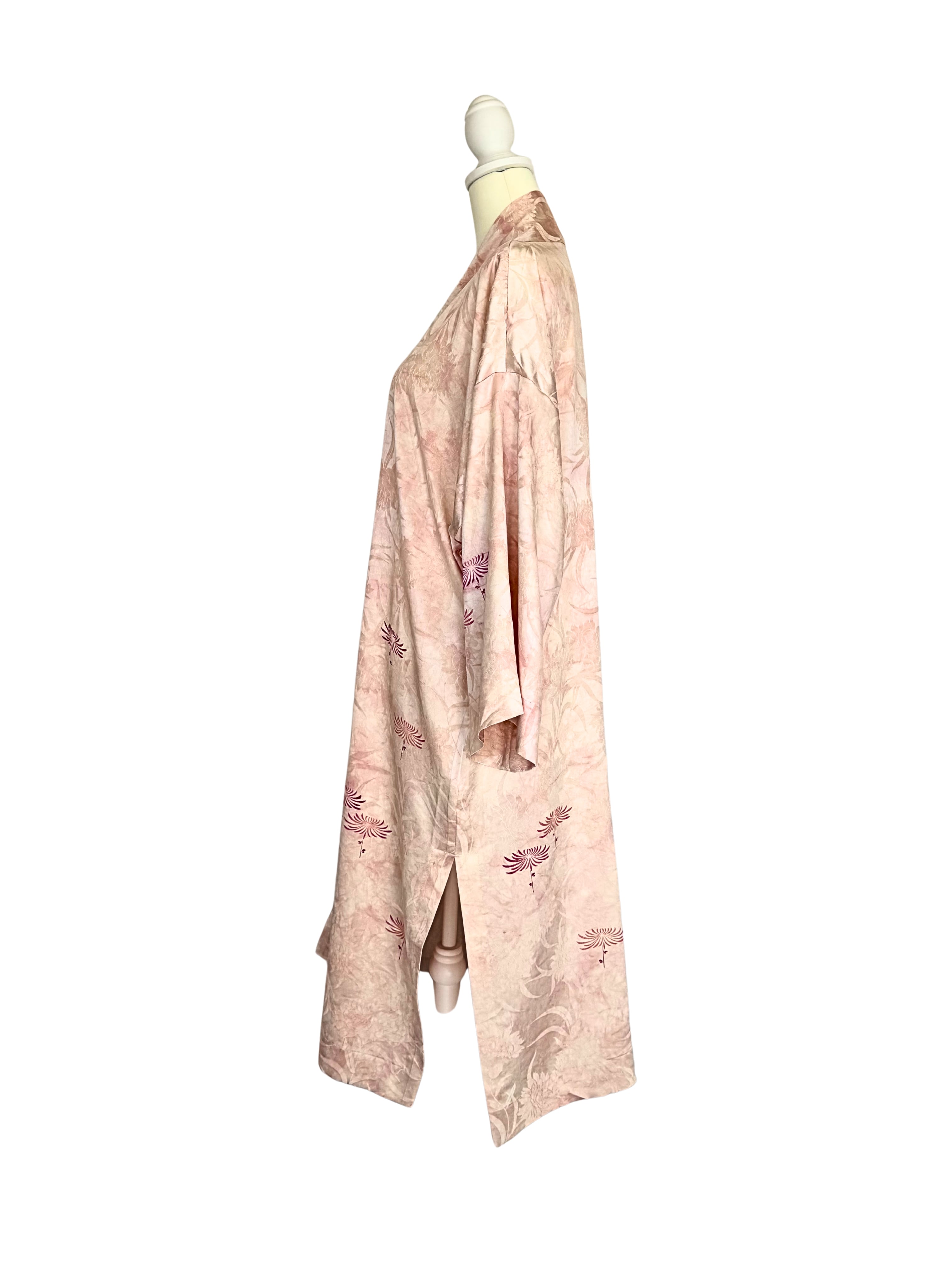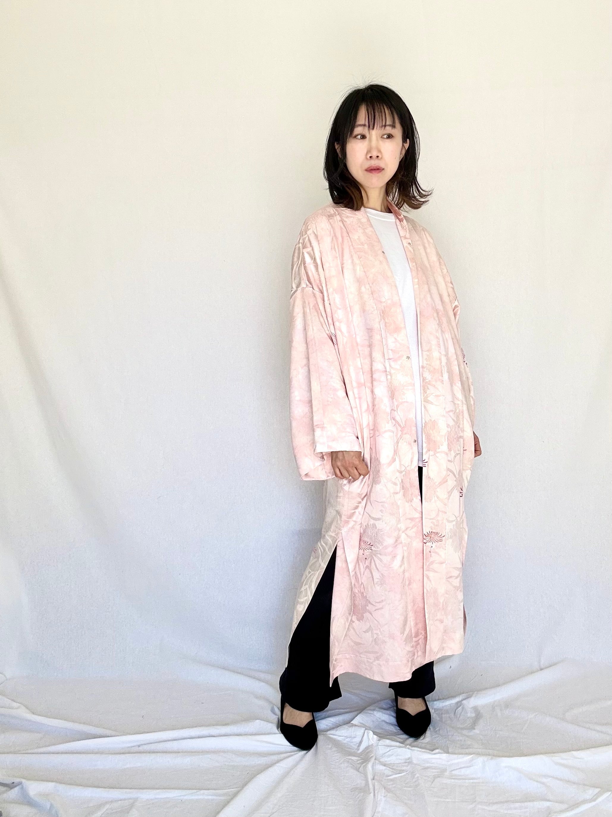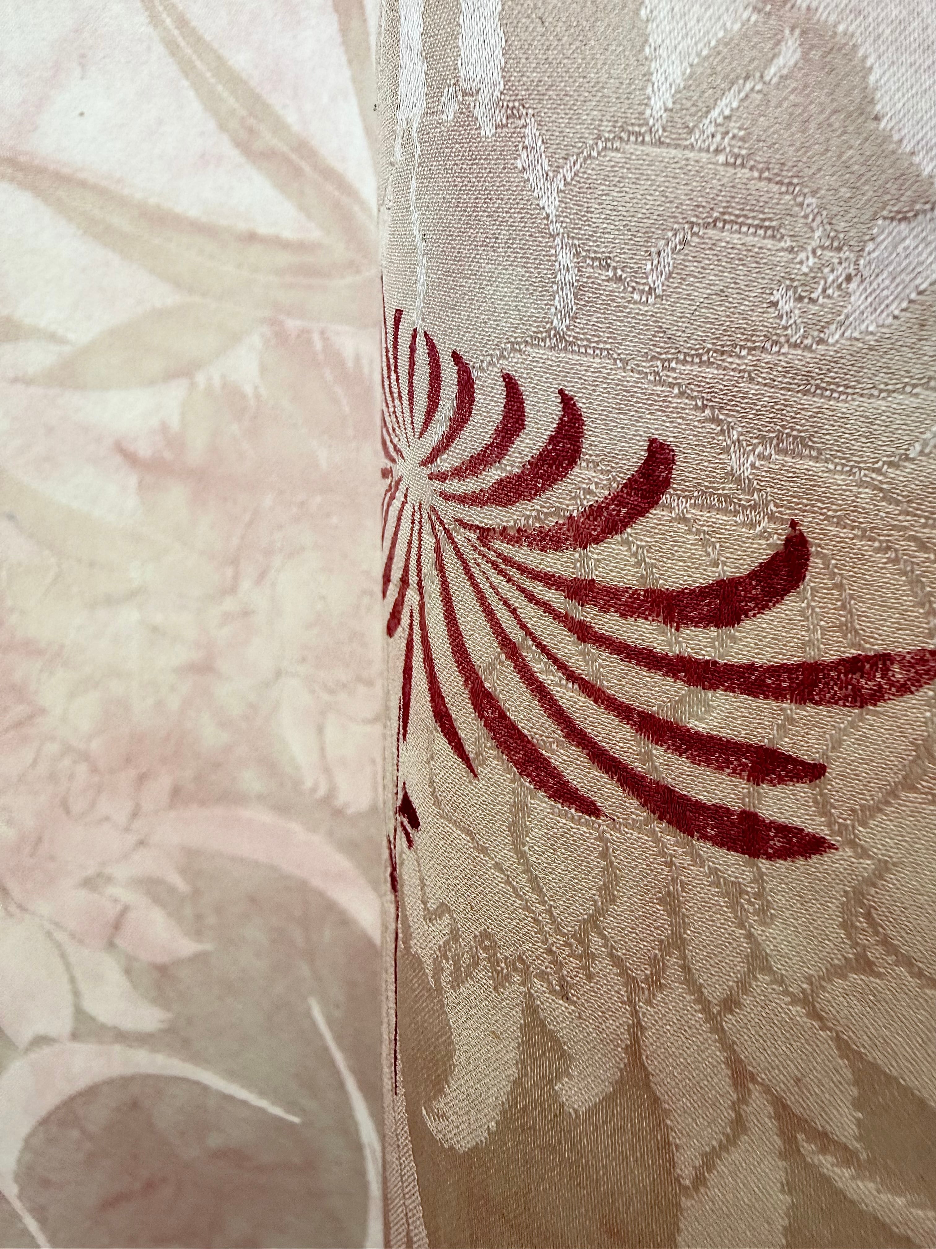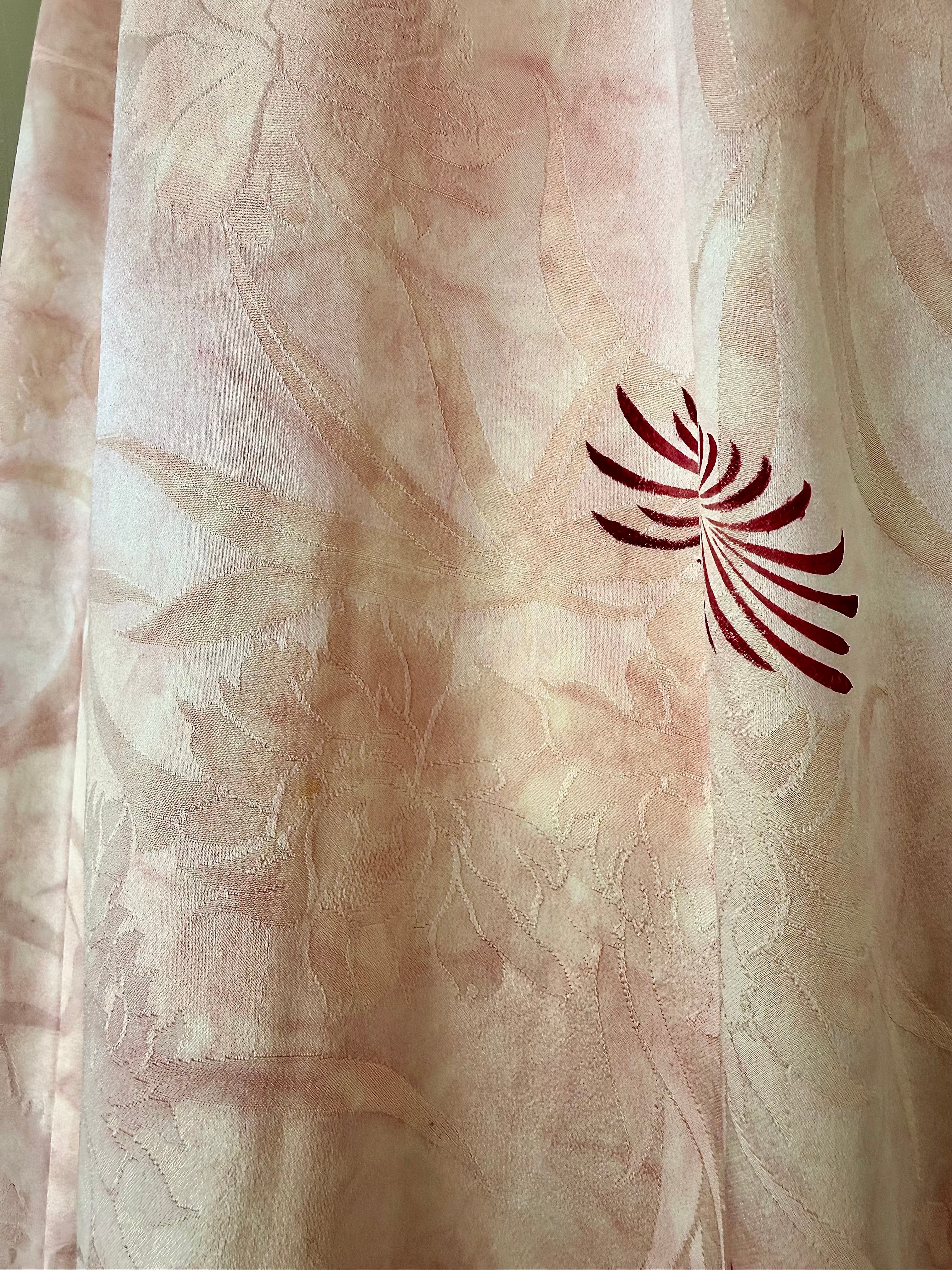 絹の光沢と菊文様の凹凸が珍しく、美しい着物アバヤです