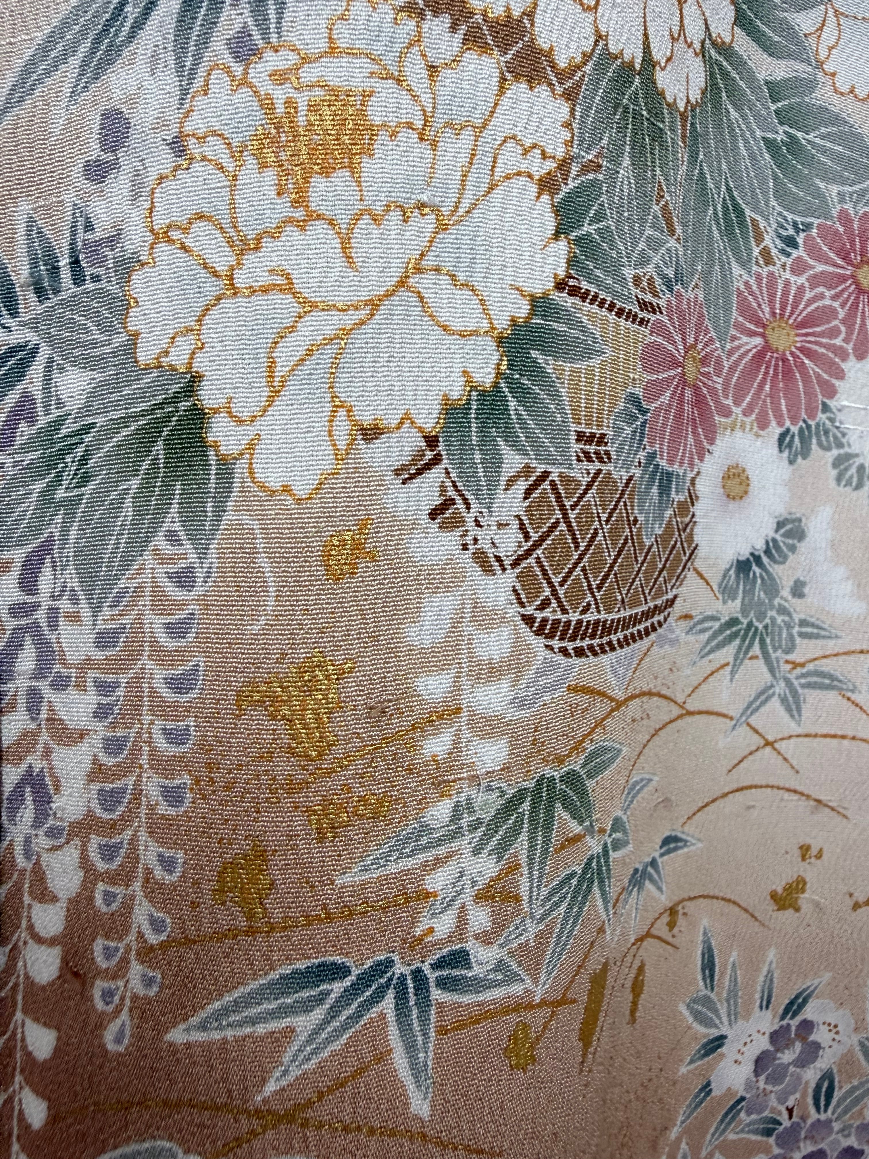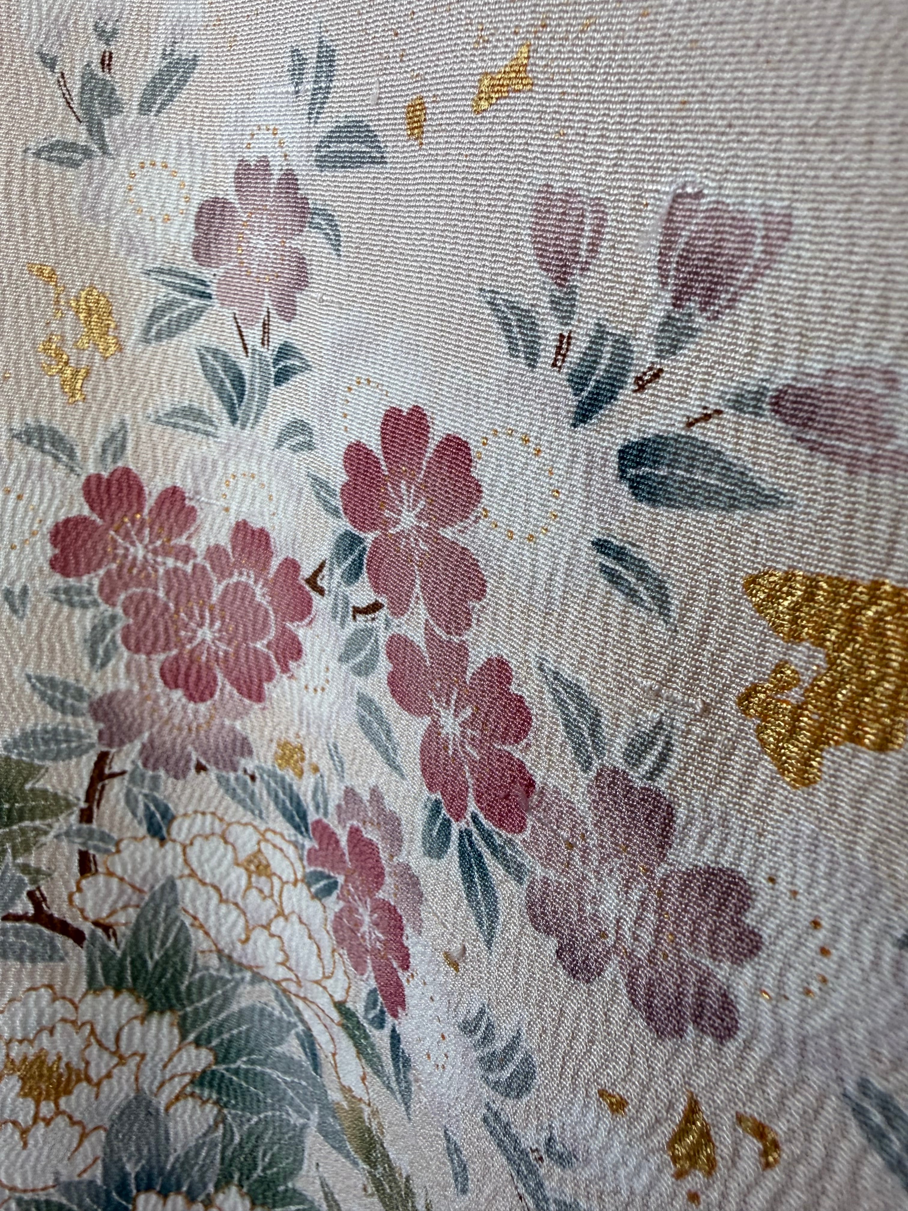 (2) There is no material label on kimono from the Taisho era to the early Showa era. At that time, there was no polyester material, so there were many silk, cotton, and linen, but please understand that it is very difficult to judge the material because there is no way to guess the fabric in the age of the kimono from the pattern and texture.