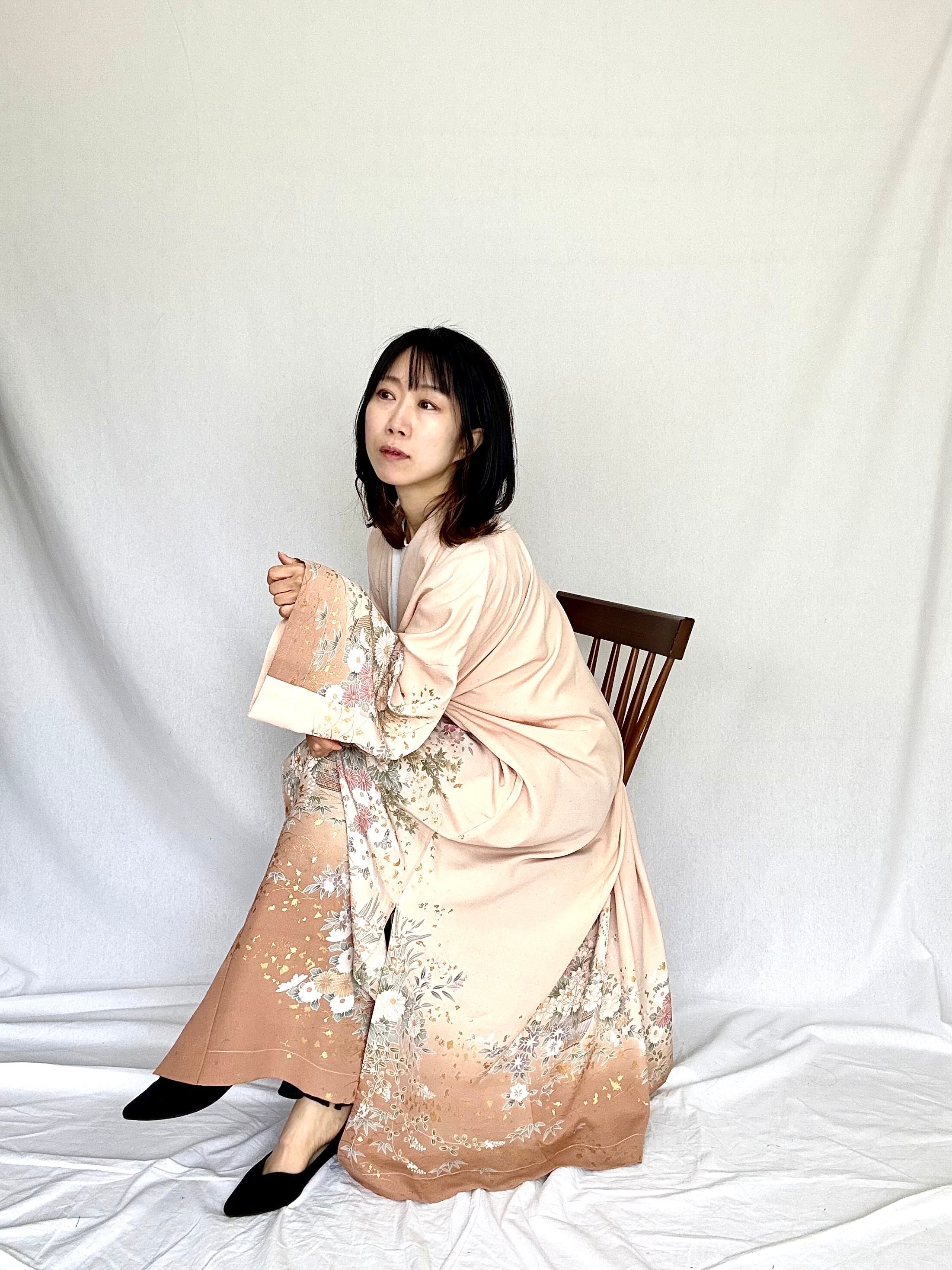 紗紗 xiaxia hijab Japan makes abaya using antique kimono. The antique kimono is selected in good condition, cleaned twice, then unraveled to make a dough, and made into a abaya. Finally, after cleaning again, we do a washing test and make it into a product.