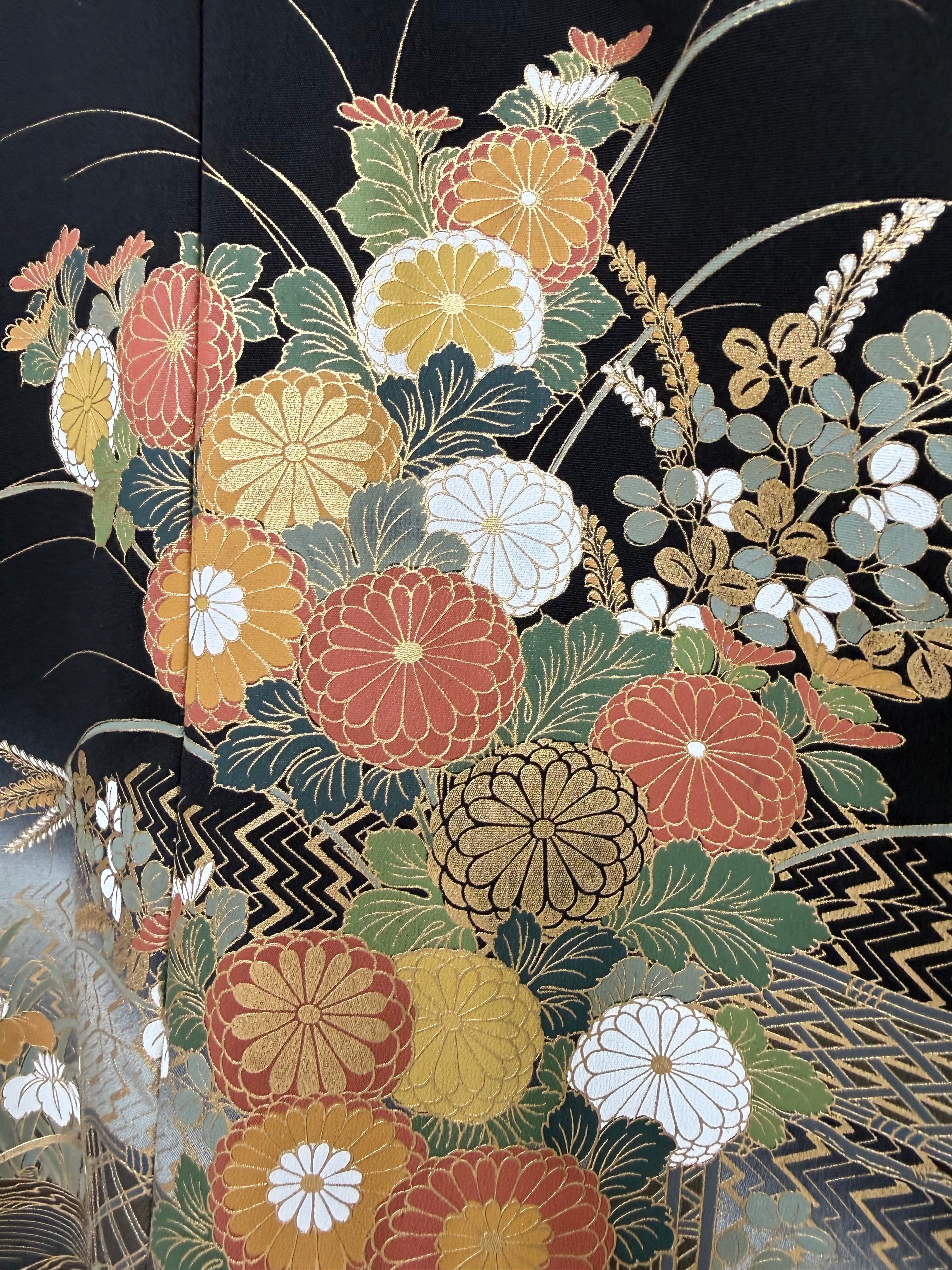 (2) There is no material label on kimono from the Taisho era to the early Showa era. At that time, there was no polyester material, so there were many silk, cotton, and linen, but please understand that it is very difficult to judge the material because there is no way to guess the fabric in the age of the kimono from the pattern and texture.