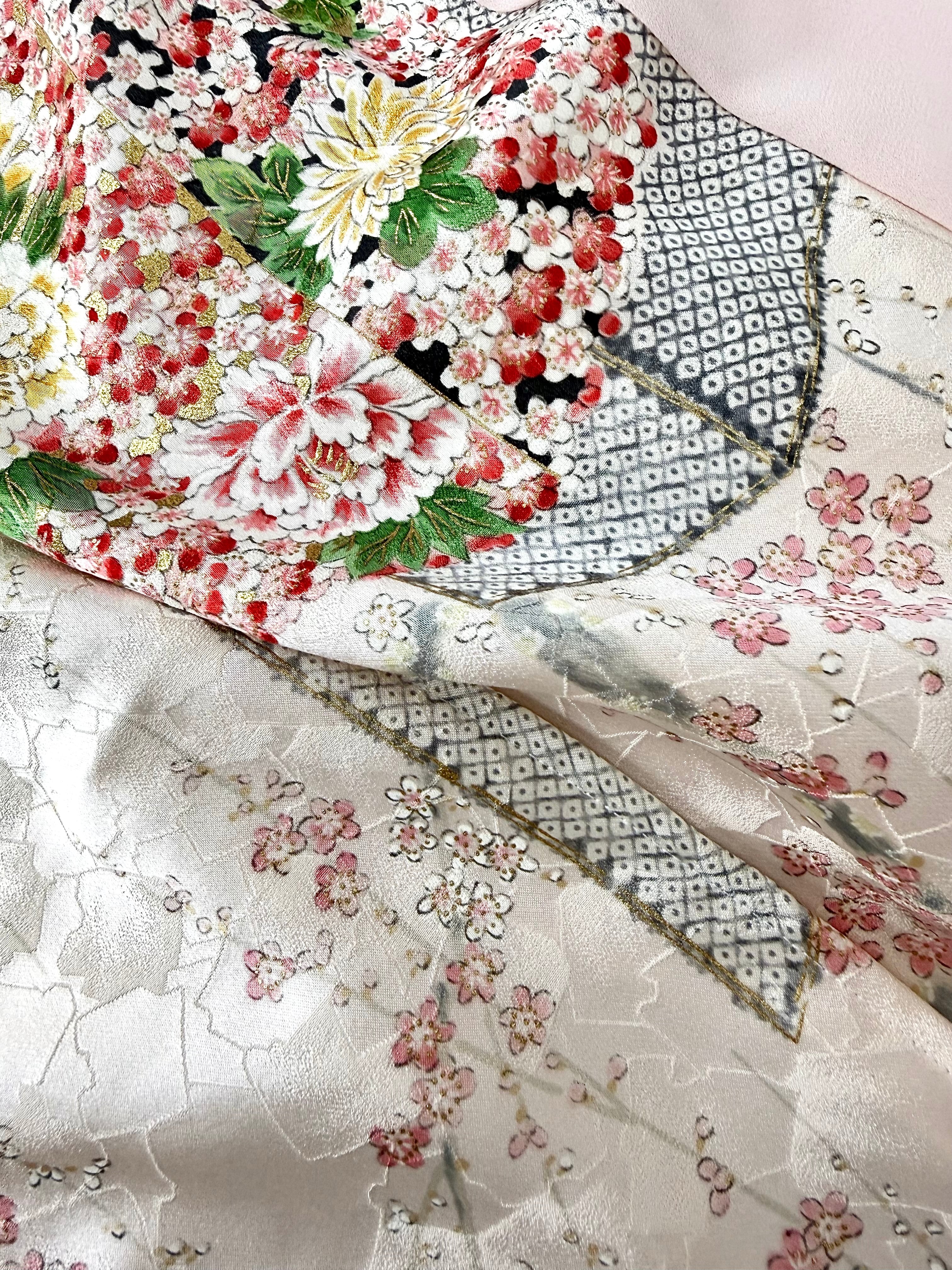 (2) There is no material label on kimono from the Taisho era to the early Showa era. At that time, there was no polyester material, so there were many silk, cotton, and linen, but please understand that it is very difficult to judge the material because there is no way to guess the fabric in the age of the kimono from the pattern and texture.