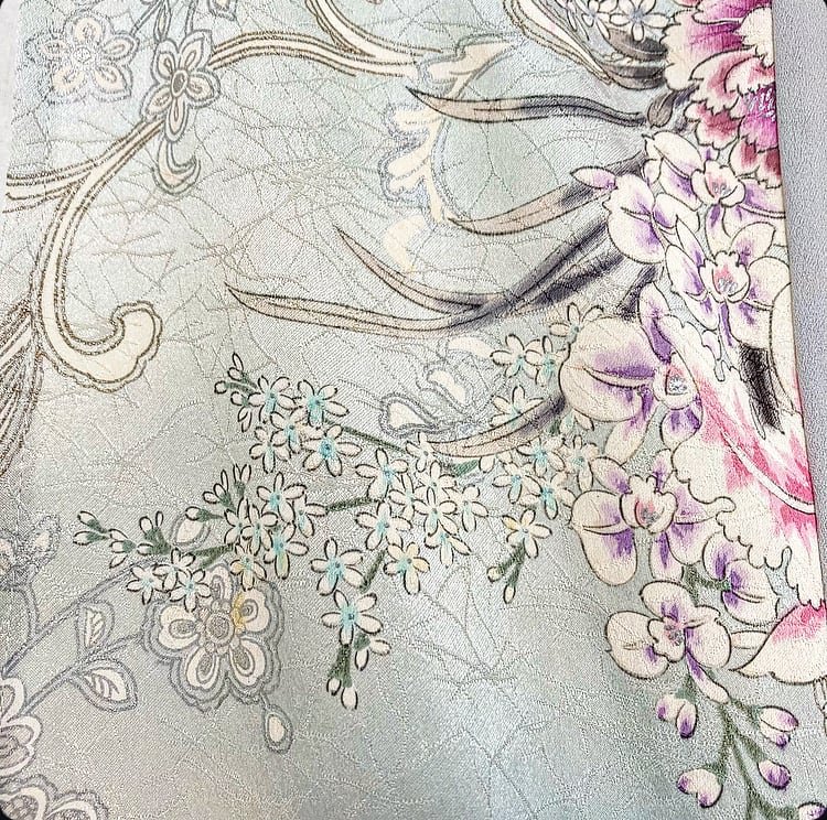 (2) There is no material label on kimono from the Taisho era to the early Showa era. At that time, there was no polyester material, so there were many silk, cotton, and linen, but please understand that it is very difficult to judge the material because there is no way to guess the fabric in the age of the kimono from the pattern and texture.