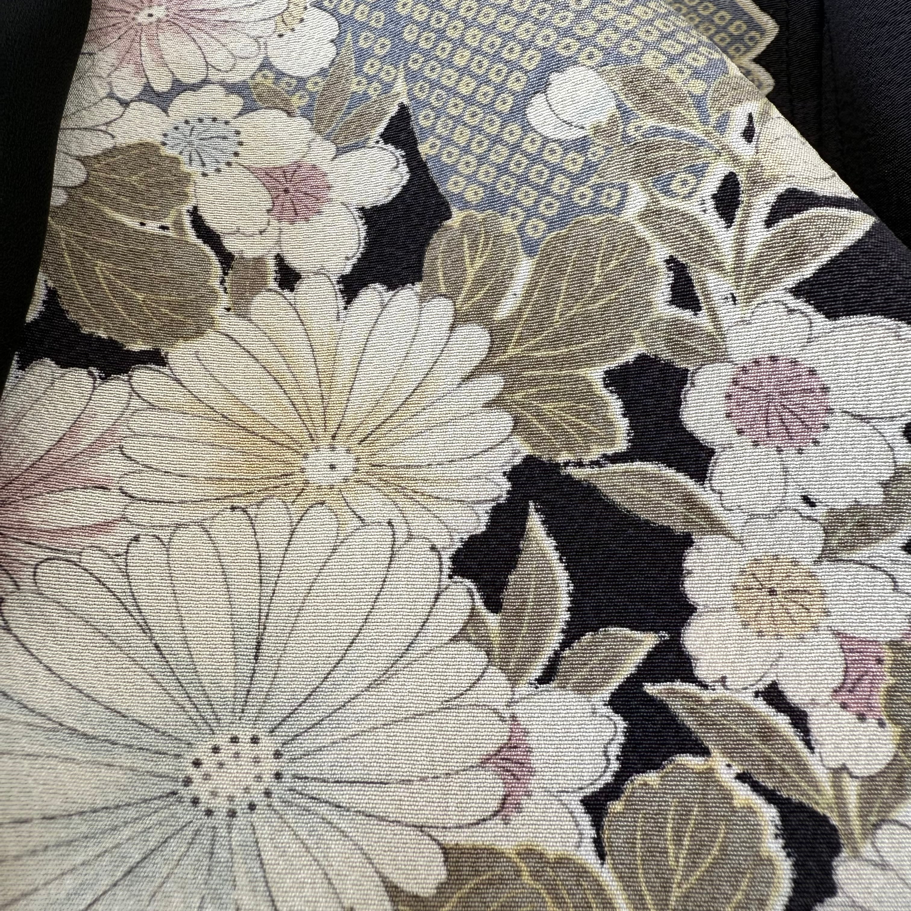 (2) There is no material label on kimono from the Taisho era to the early Showa era. At that time, there was no polyester material, so there were many silk, cotton, and linen, but please understand that it is very difficult to judge the material because there is no way to guess the fabric in the age of the kimono from the pattern and texture.