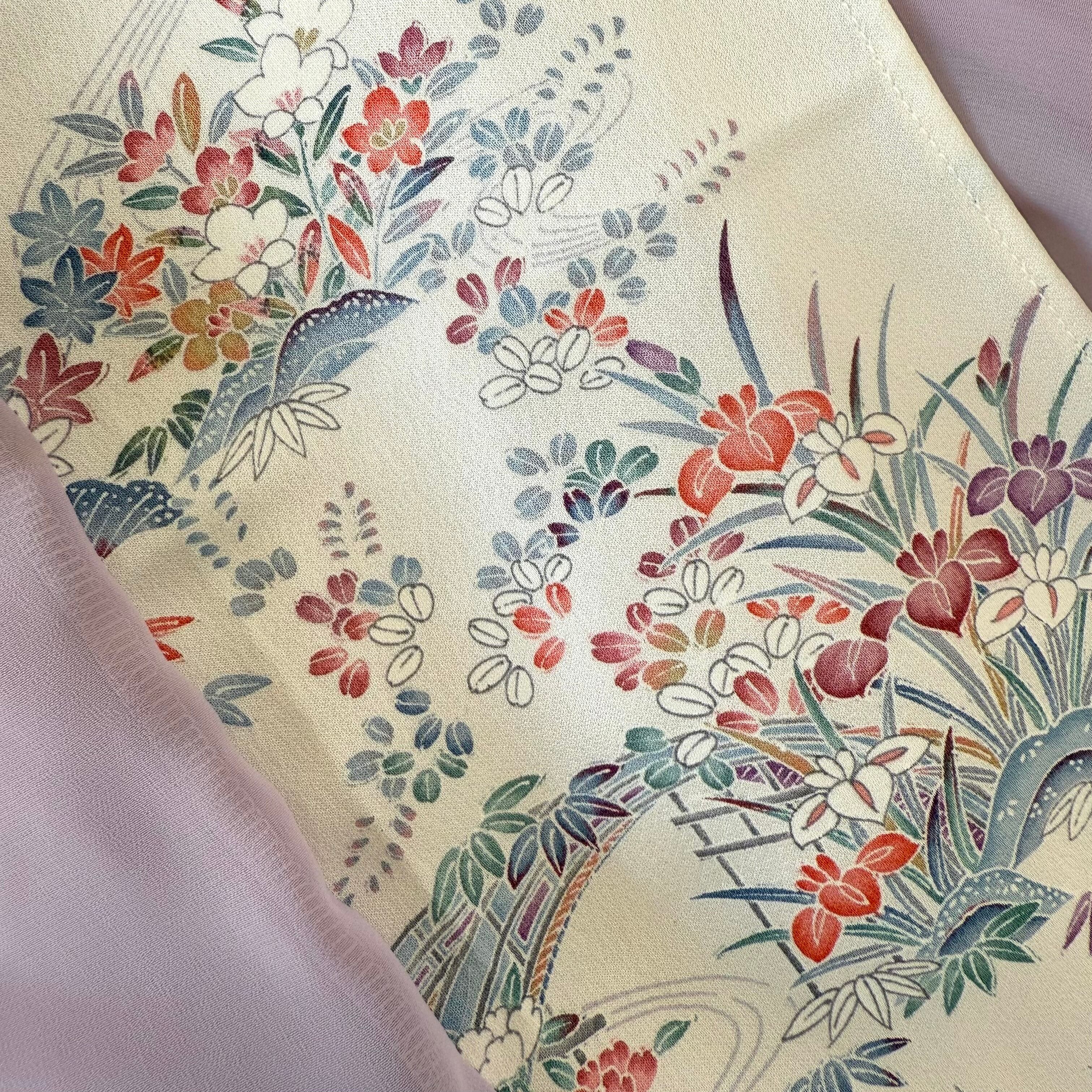 (2) There is no material label on kimono from the Taisho era to the early Showa era. At that time, there was no polyester material, so there were many silk, cotton, and linen, but please understand that it is very difficult to judge the material because there is no way to guess the fabric in the age of the kimono from the pattern and texture.