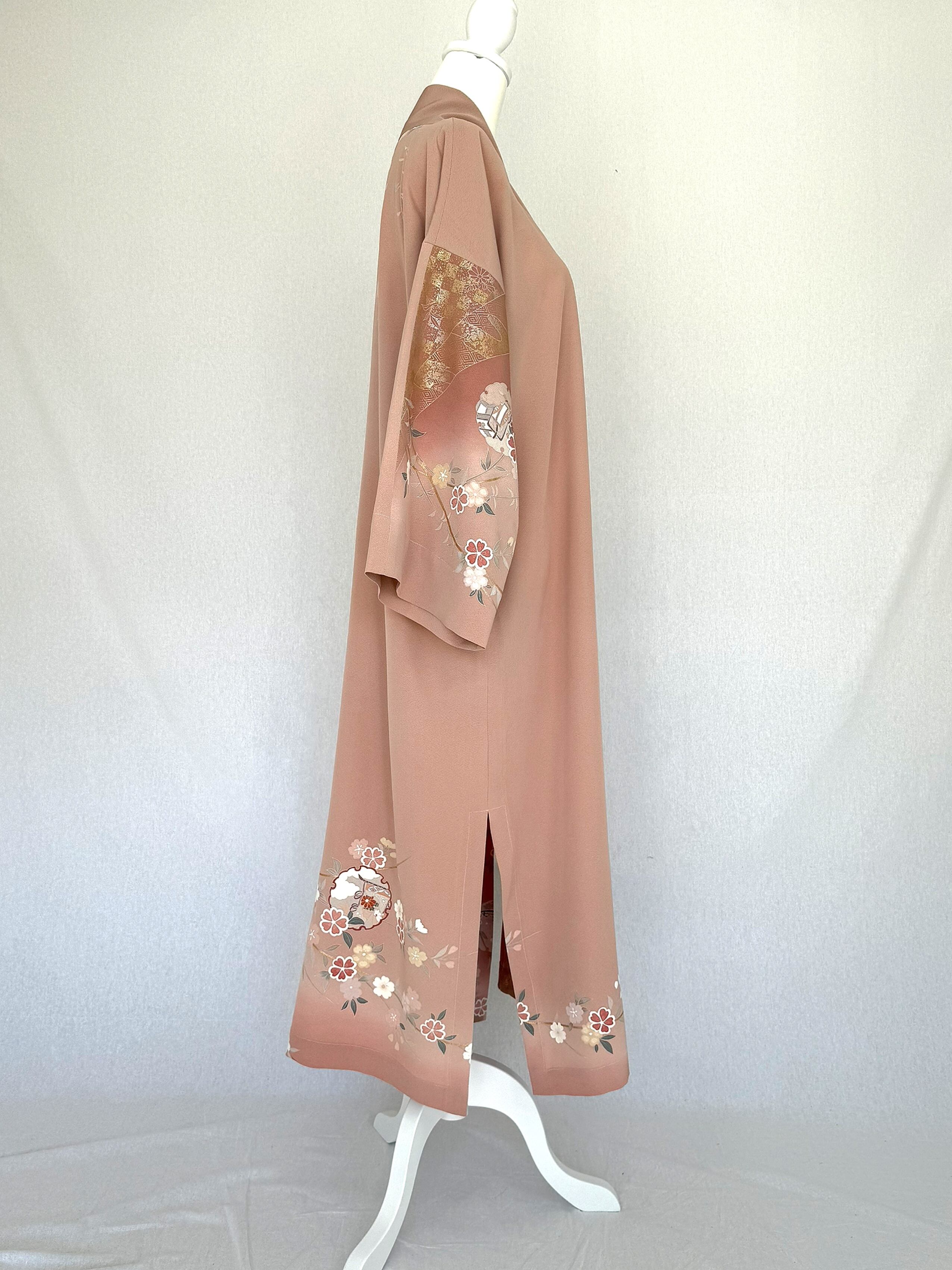 The antique kimono is selected in good condition, cleaned twice, then unraveled to make a dough, and made into a abaya.